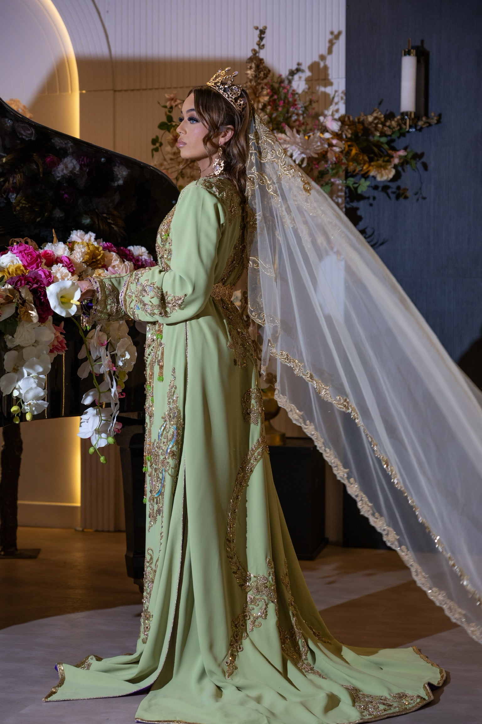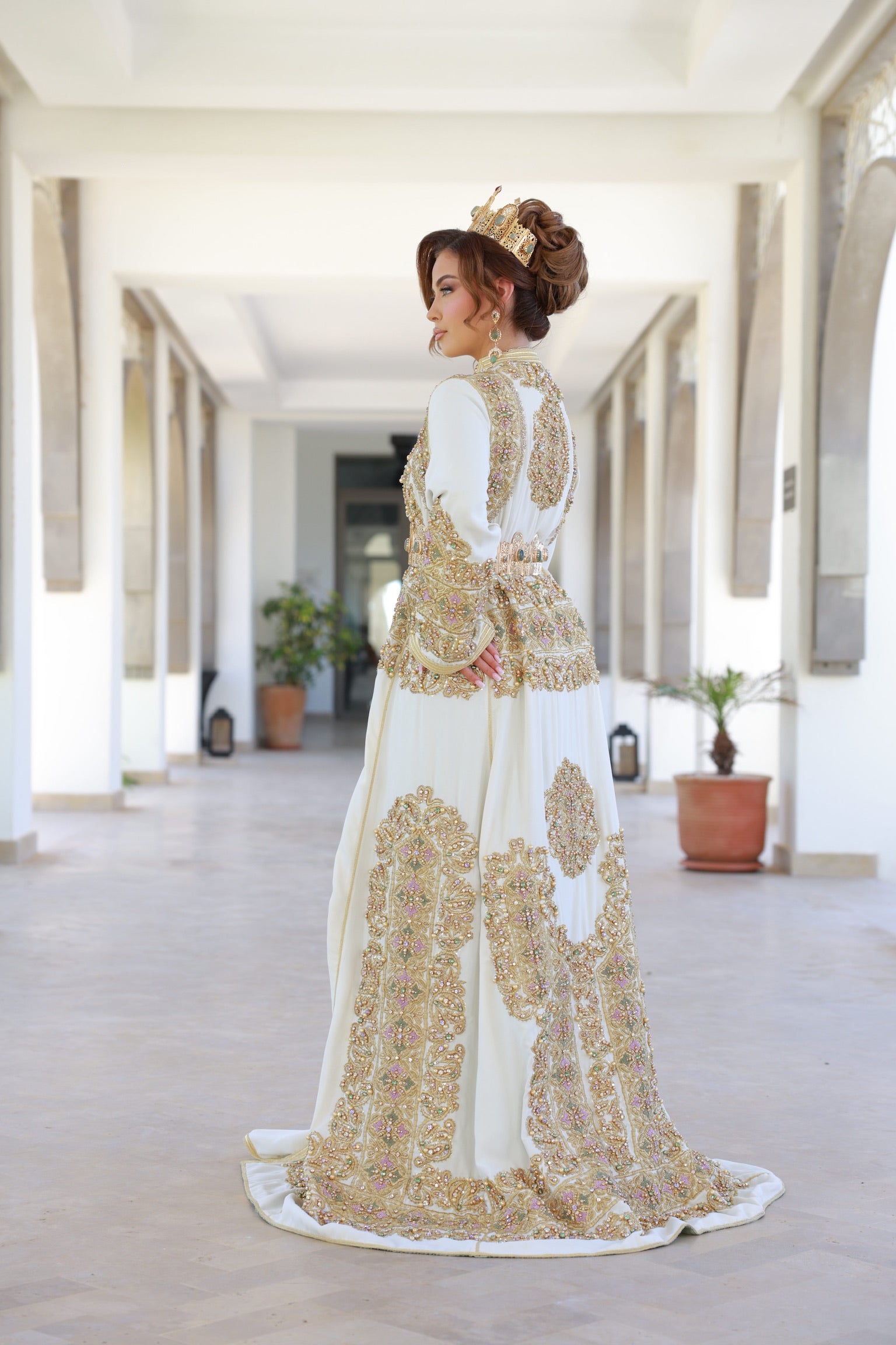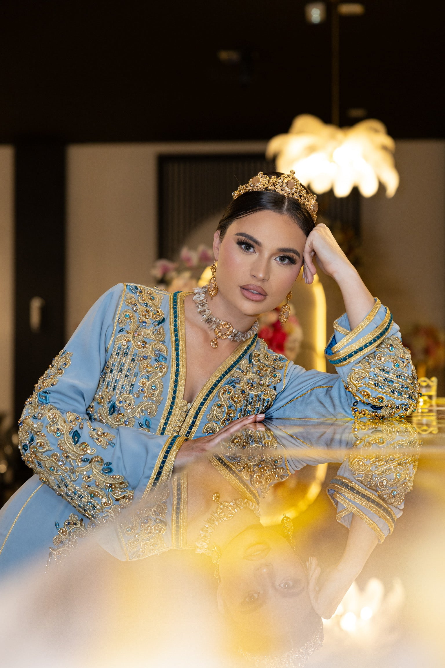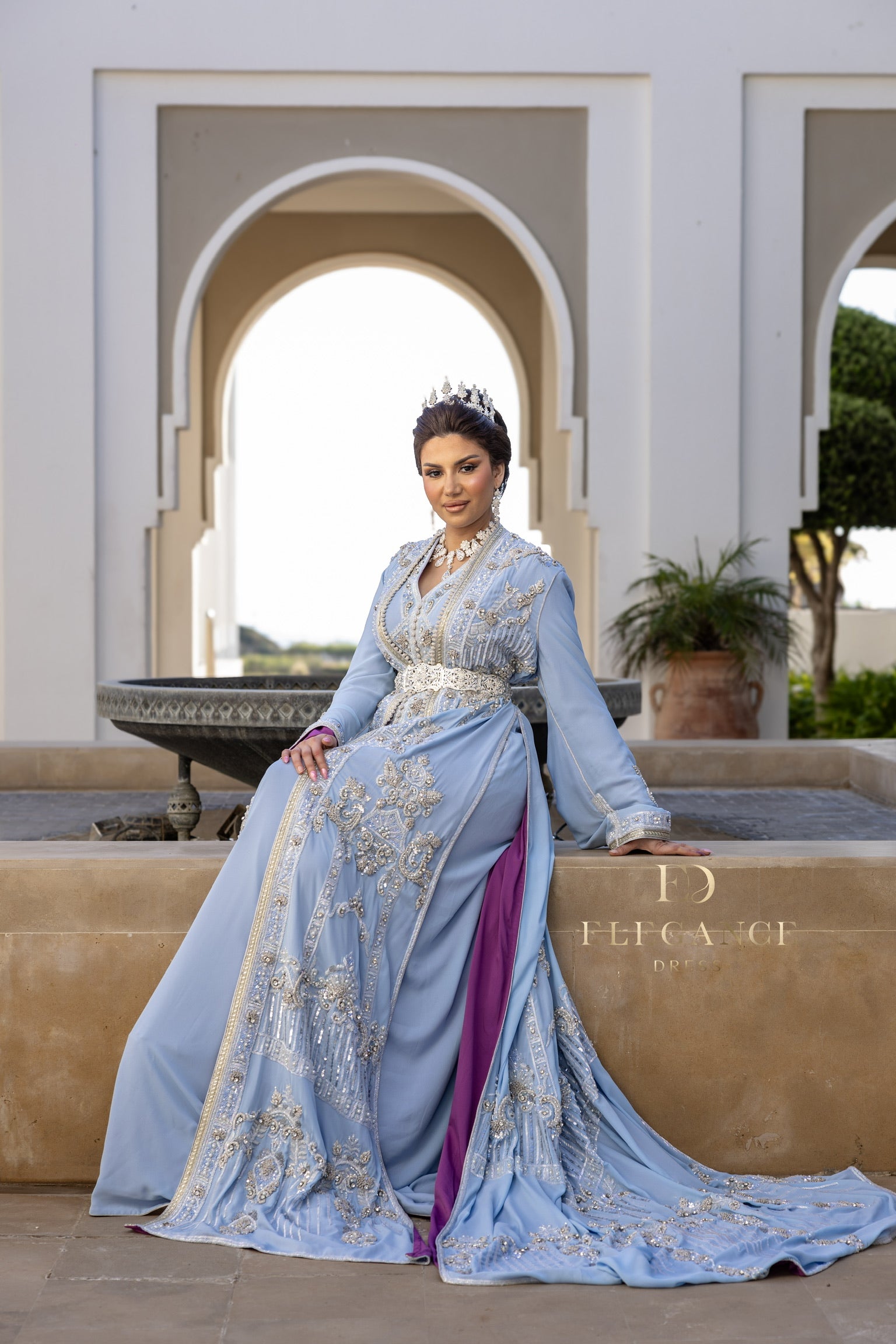 Chez ÉLÉGANCE DRESS, nous vous accompagnons dans le choix de vos tenues et accessoires, en harmonie avec votre morphologie, vos envies et le thème de votre mariage. Nous proposons exclusivement des takchitas, caftans, robe chelha, robe kabyle, robe chaoui et karakou pour les mariées, toutes accompagnées de ceintures raffinées pour un rendu majestueux.